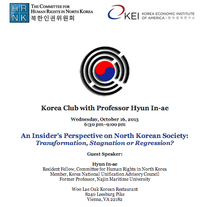 2013년 10월 16일에 열리는 강연회에 여러분을 초대합니다. 이번 강연에서는 현인애 교수님을 초청하여 “내부자의 시선으로 본 북한 사회 (북한의 내부 동향): 변화, 침체 또는 회귀인가?” 라는 주제로 발표할 것입니다.